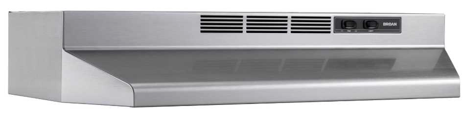 The Broan® non-ducted under-cabinet range hood with light and easy install system provides effective filtration, high quality and value. The motor is permanently lubricated and designed for years of trouble free service. Separate rocker switches control the light and 2-speed fan light.Read More